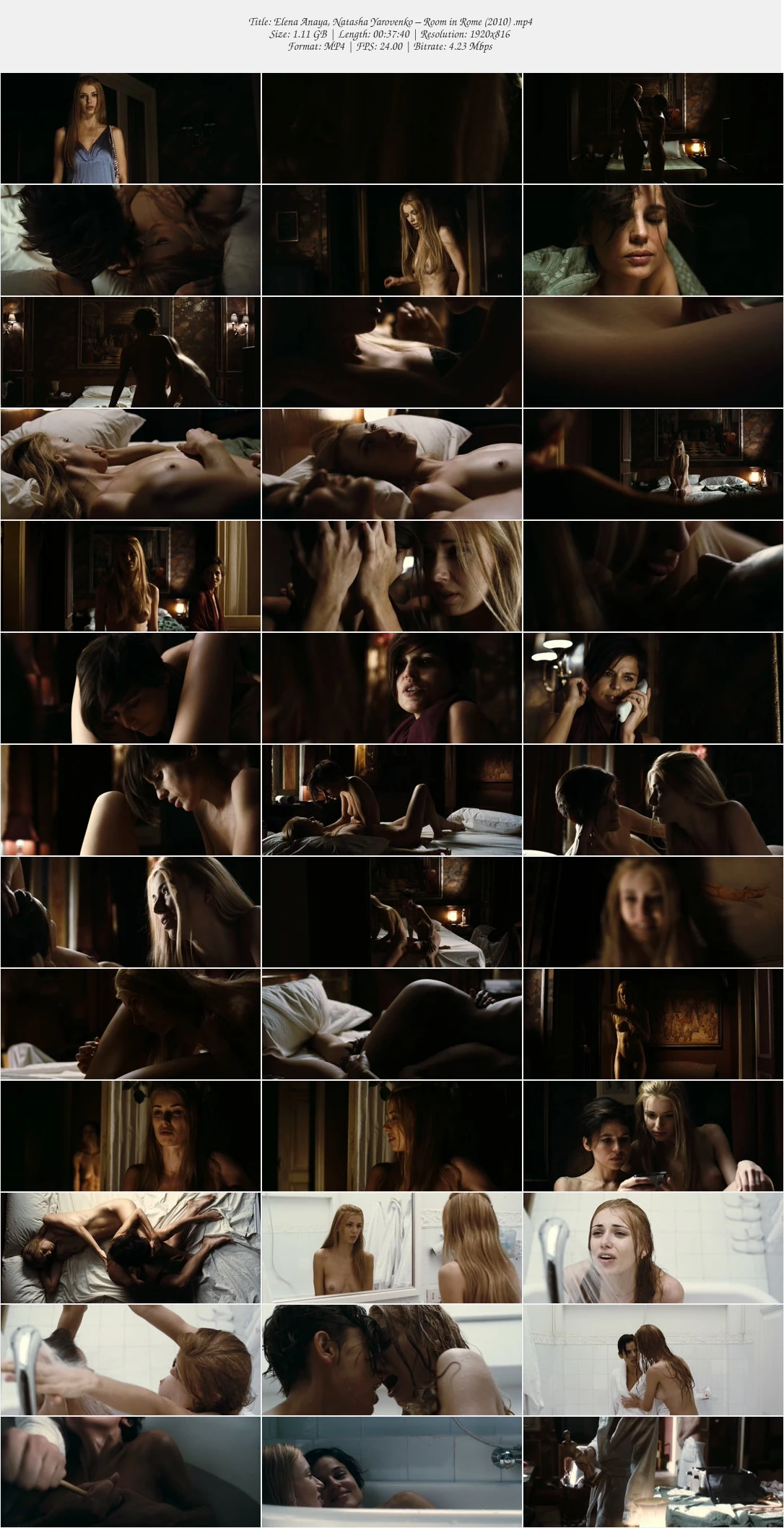 Watch online or download nude and lesbian sex scenes with actresses Elena Anaya and Natasha Yarovenk from romance Room in Rome ( Habitación en Roma) (2010).