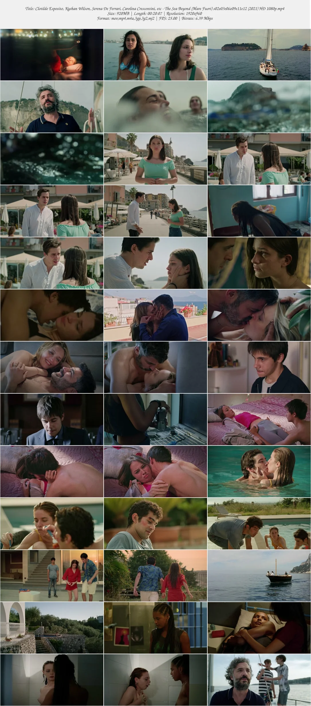 Italian actresses Clotilde Esposito, Kyshan Wilson, Serena De Ferrari, and Carolina Crescentini appear in multiple explicit nude and sex scenes across episodes of the 2021 Italian drama series The Sea Beyond (original title: Mare Fuori), specifically Season 2 episodes 03, 06, 09, 11, and 12.