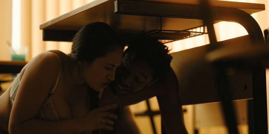 Latina teacher Lo Rivera fucks with student in student office, scene from Love Addicts 2022